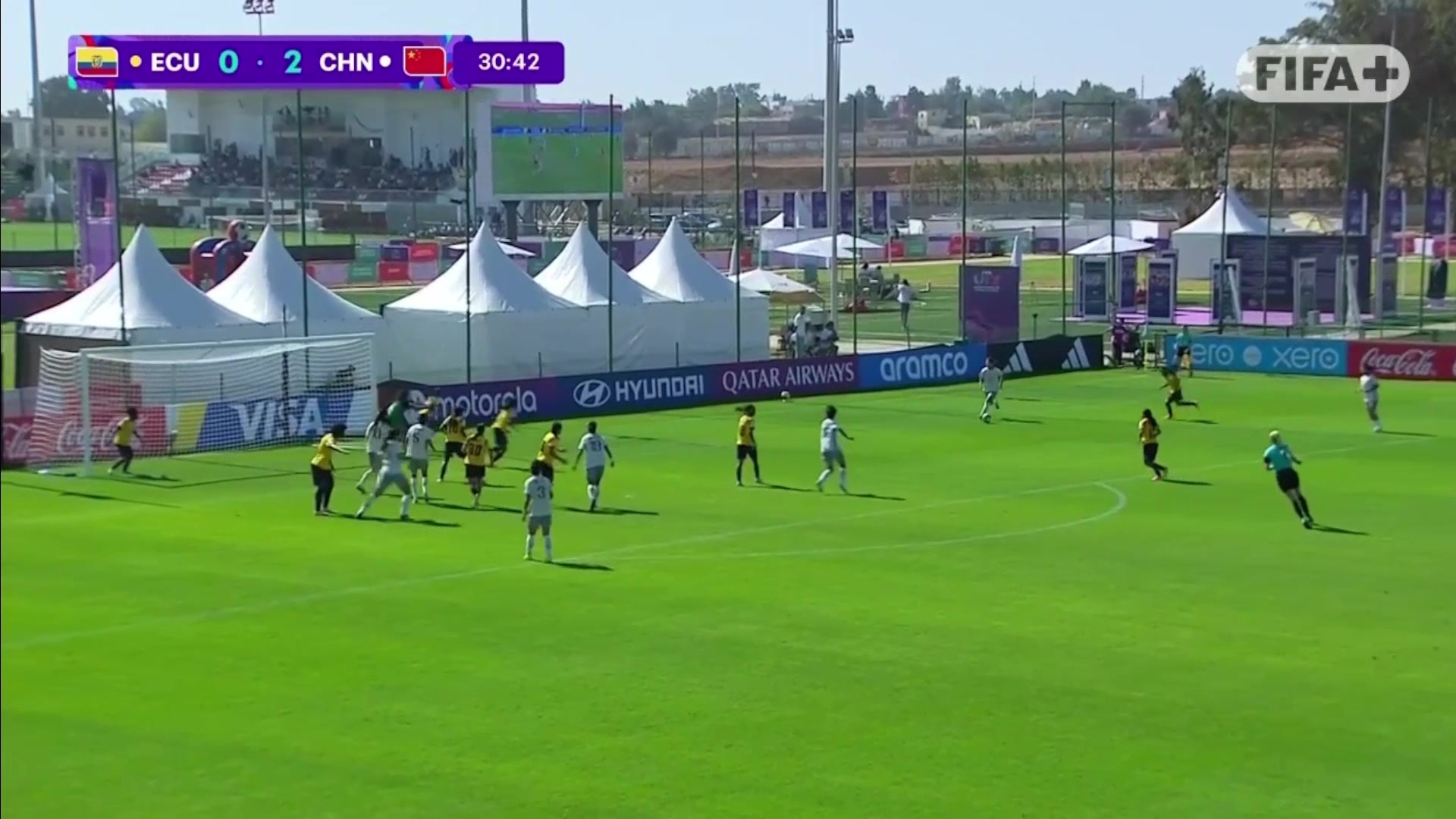 十分角!曾屹婕连场任意球破门,U17中国女足2-0厄瓜多尔