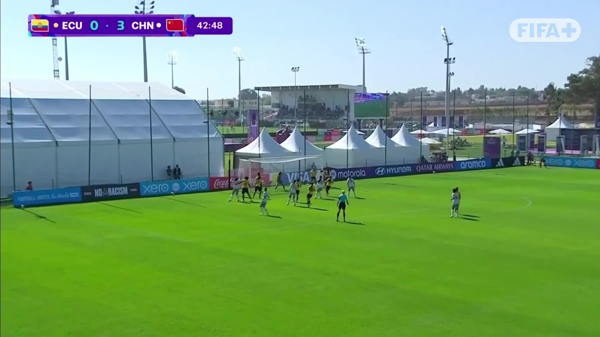 陈睿琳小角度破门!U17中国女足3-0领先厄瓜多尔