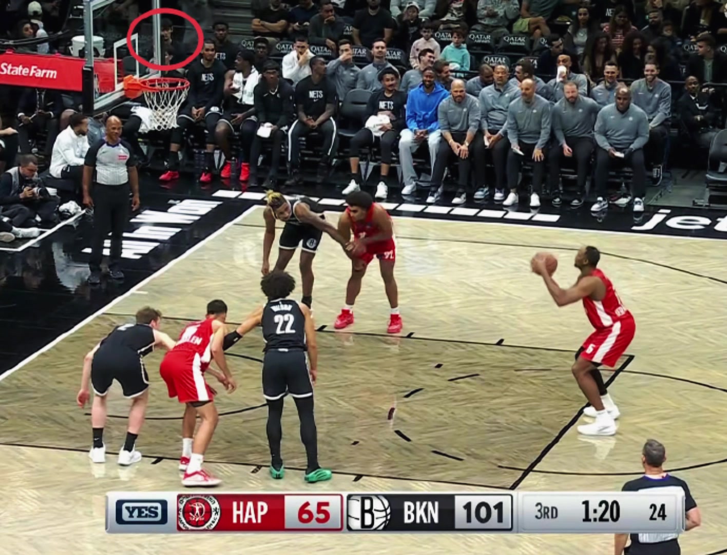 篮网第一场季前赛,曾凡博没有得到出场机会,坐在板凳席角落处