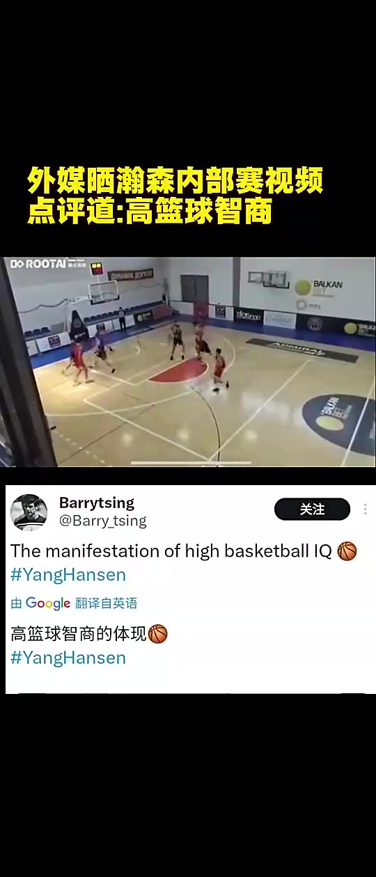 杨瀚森此前内部赛妙传!外媒点评:这就是高篮球智商的体现!!