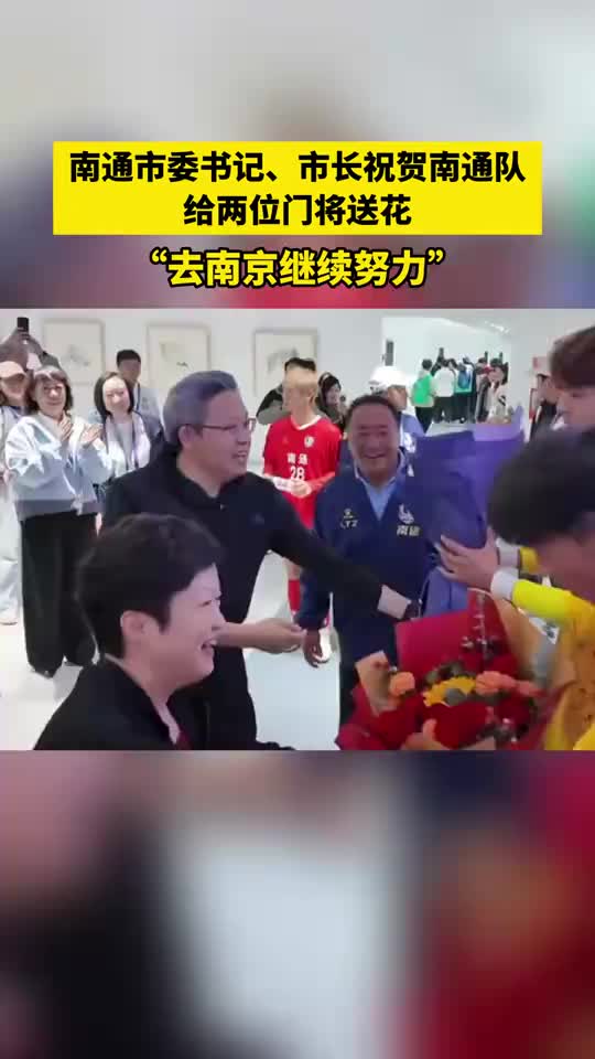 功臣!南通市委书记苏超半决赛赛后给南通队两位门将送上鲜花?