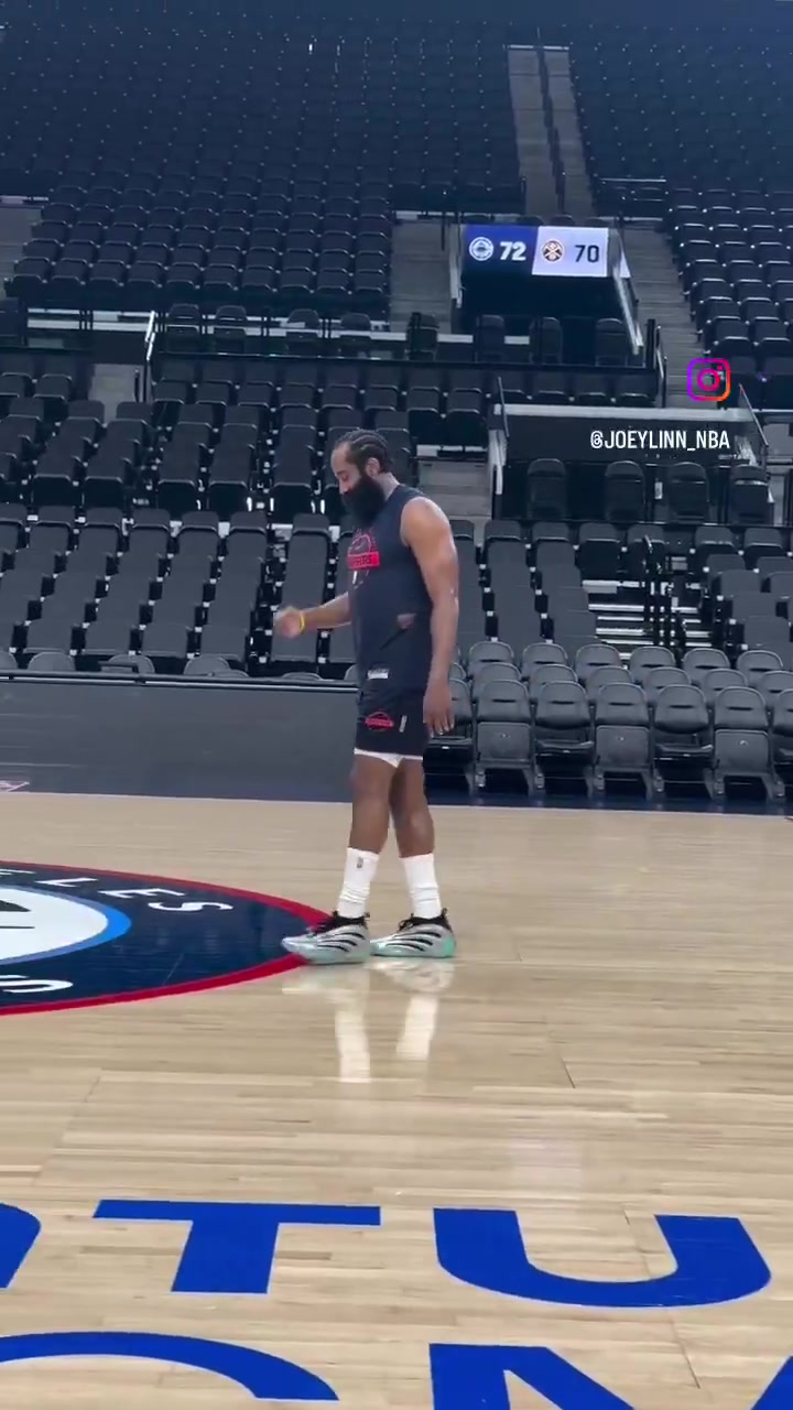 身先士卒!哈登是今天快船训练到最晚的球员,整个球场只剩他一个