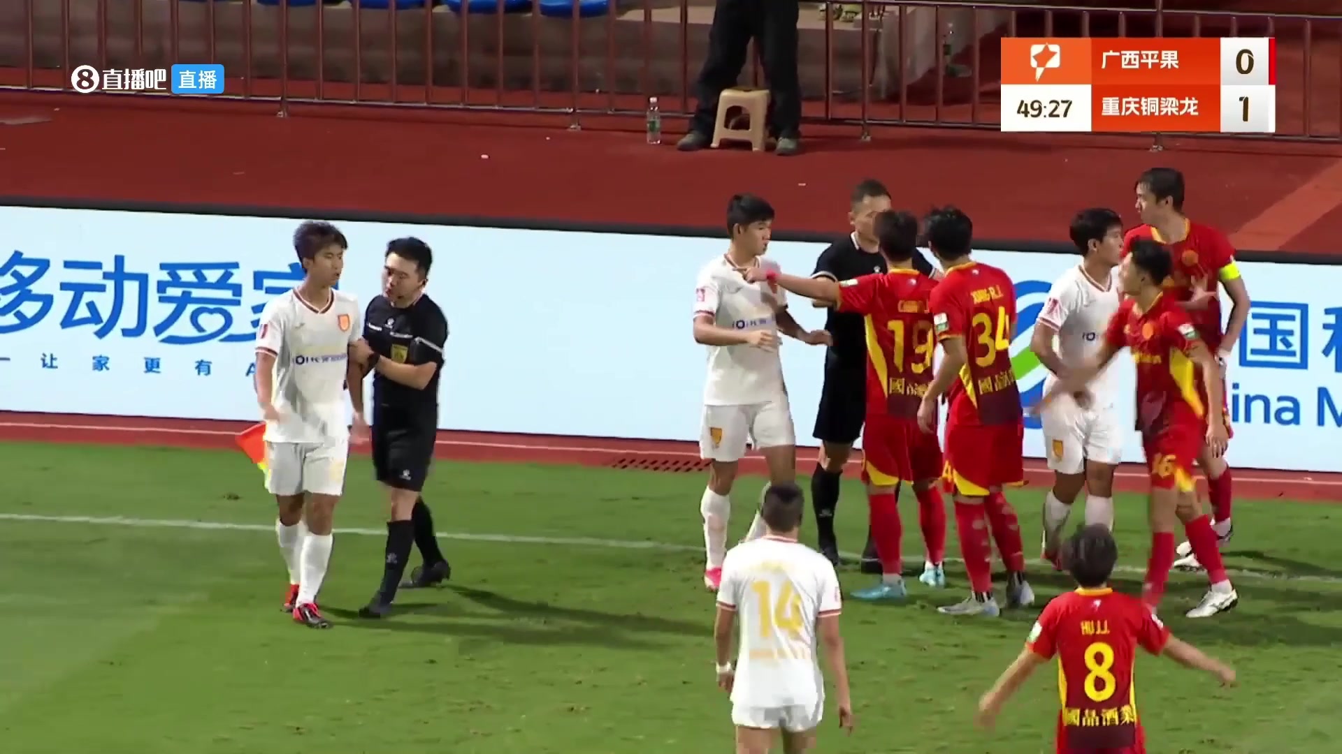 引发不满!铜梁龙球员把对方撞伤后摊手表示无辜,裁判挡在中间