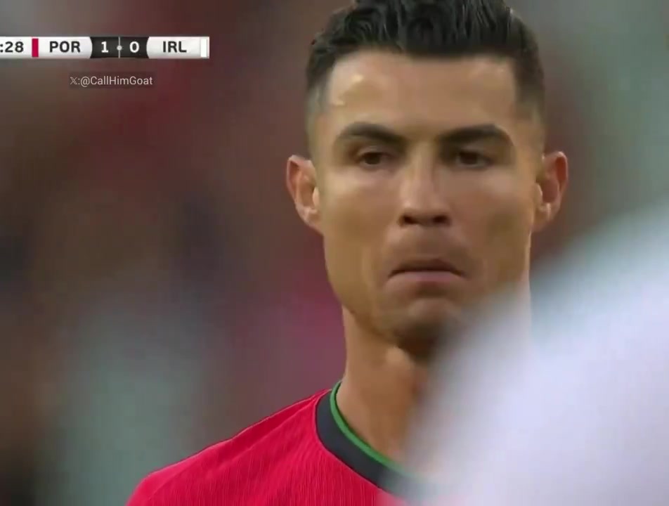 C罗2024年对阵爱尔兰踢任意球时激励自己,可惜球击中了门柱