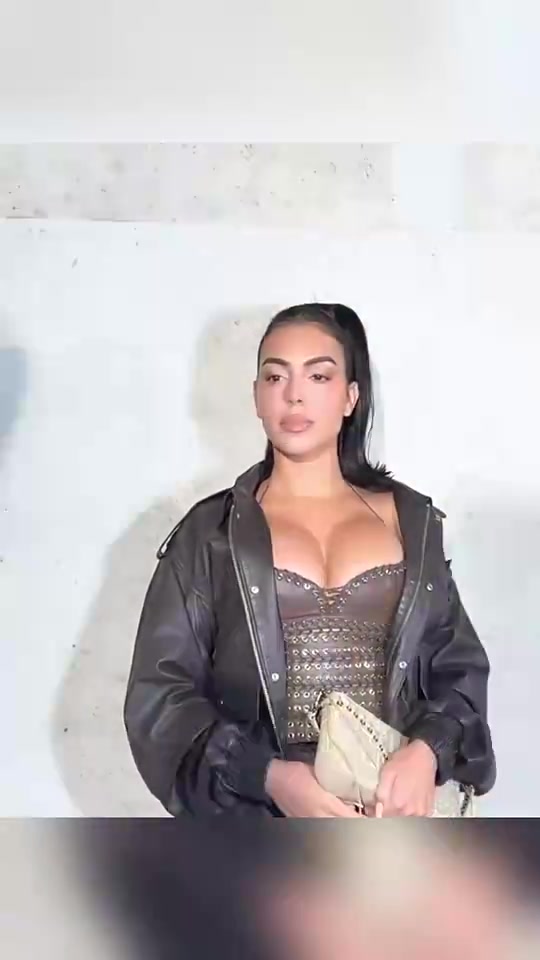 C罗老婆乔治娜穿皮裤现身时尚展会,这身穿搭看着好夸张啊