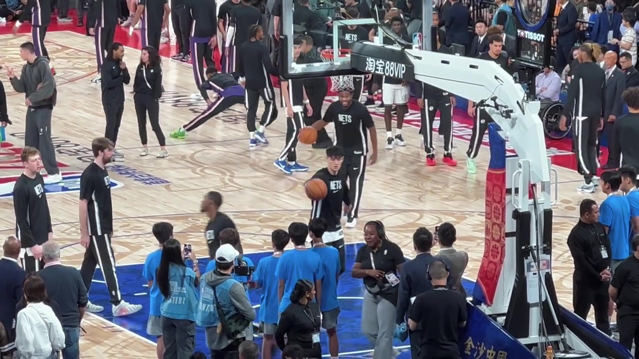 篮网教练能不能给机会?中国赛现场球迷记录曾凡博热身画面