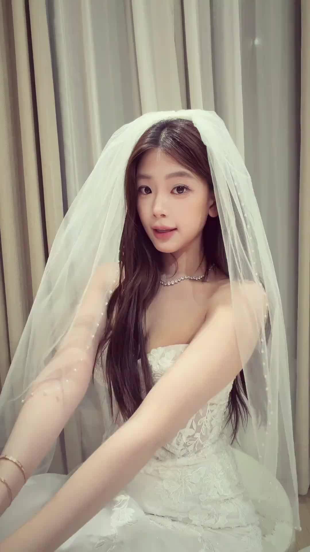 椰子身穿白色婚纱 真美啊
