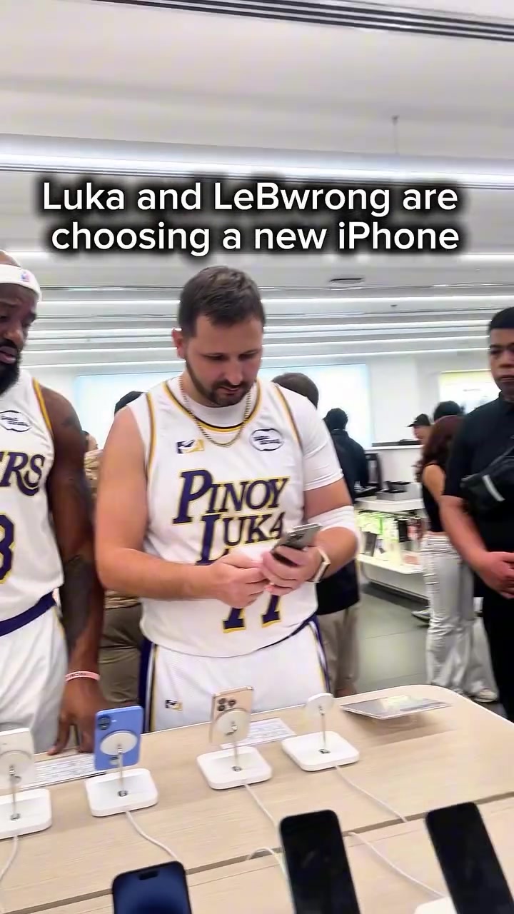 惊!球迷在手机店遇到“老詹”与“卢卡”在挑新iPhone