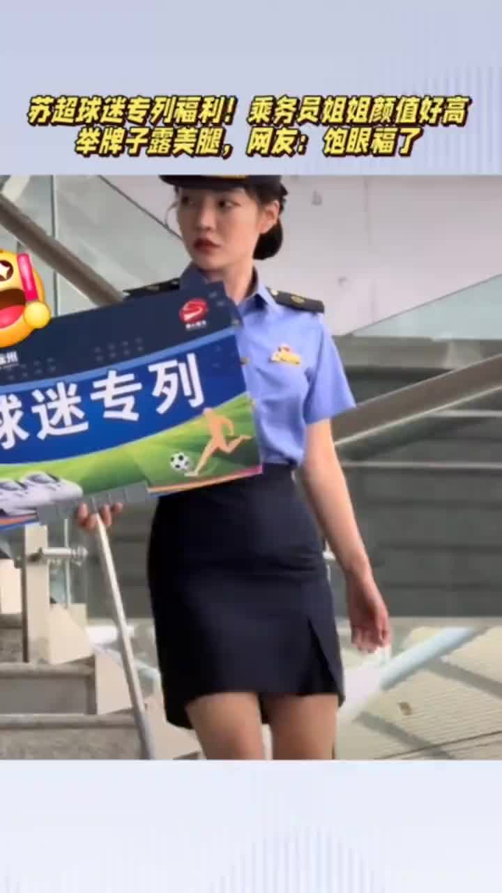 苏超球迷专列福利!乘务员小姐姐颜值是真的高