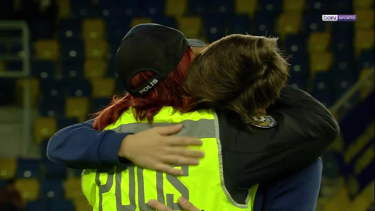 赛前居莱尔和当警察的姑姑亲切拥抱