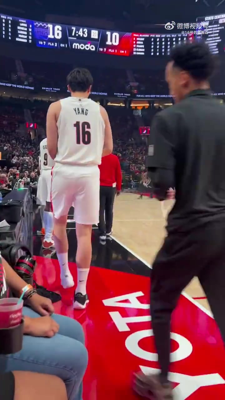 大哥你是在开拓者替补席?拿起手机对着杨瀚森屁股一顿拍!