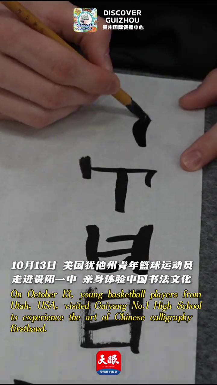 美国青年篮球运动员一行走进贵阳第一中学,亲身体验中国书法文化
