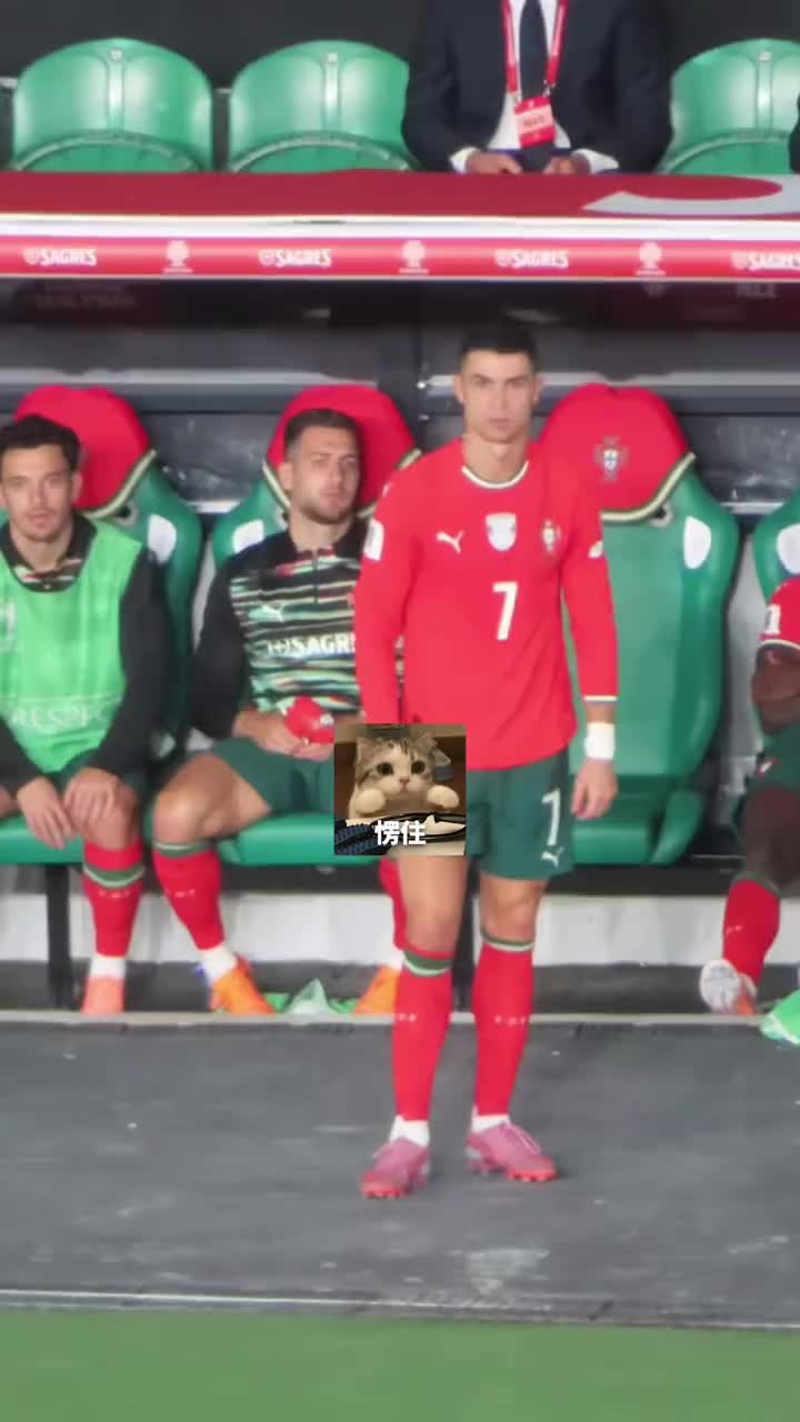 自己辛苦反超的比分就这么被扳平,场边C罗很无奈