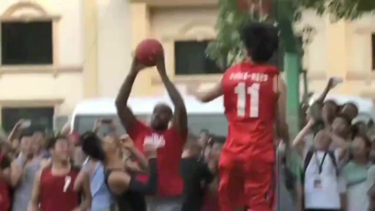 亲民!詹姆斯此前中国行与大学生球迷同场比赛 展示素质暴力劈扣