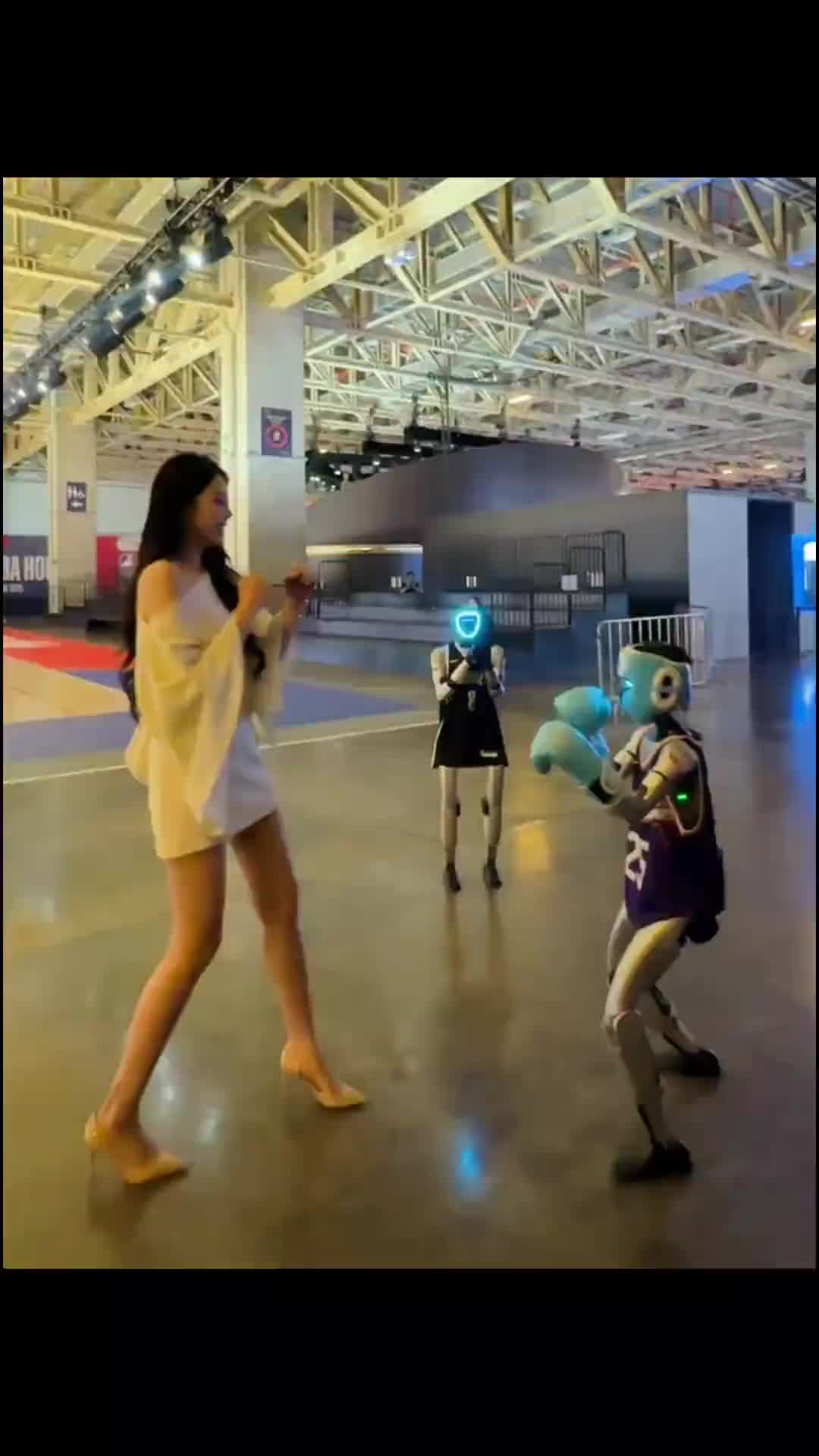 美女主播小太阳跟太阳队的机器人打起拳击了