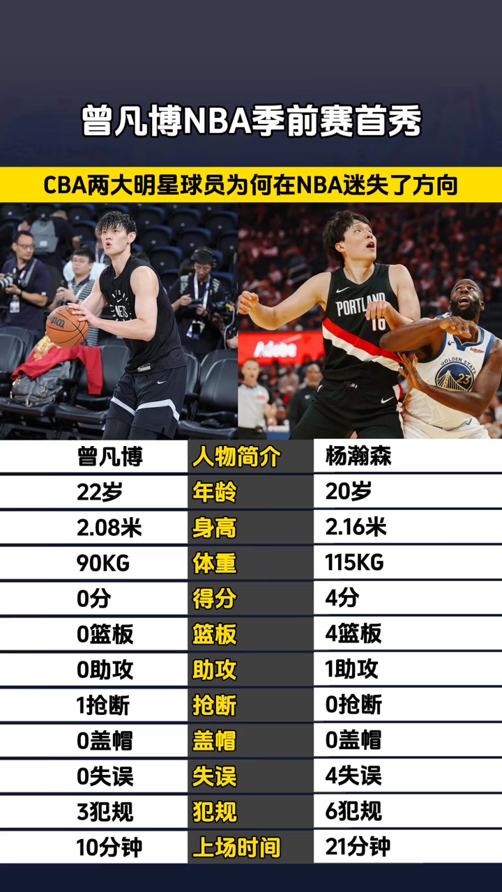 季前赛首秀对比:杨瀚森4分4板6犯毕业 曾凡博仅1次抢断