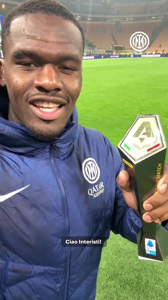实至名归!独造四球的博尼赛后手持本场MVP奖杯大喊:国米加油