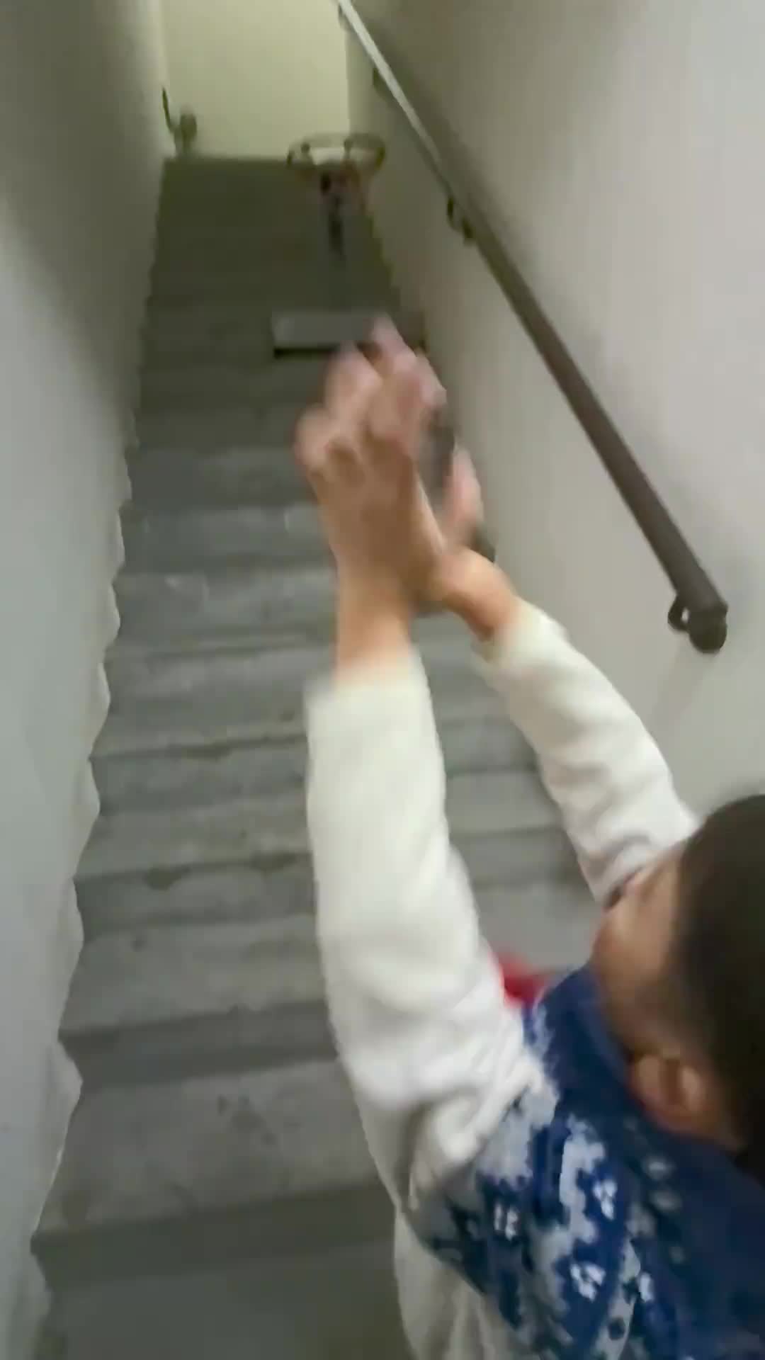 小弟弟楼梯间苦练投篮 不懂就问这会吵到邻居吗