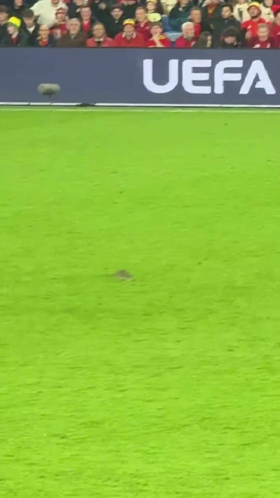 老鼠闯入球场库尔图瓦想抓住但失手,威尔士球员将其驱赶出场