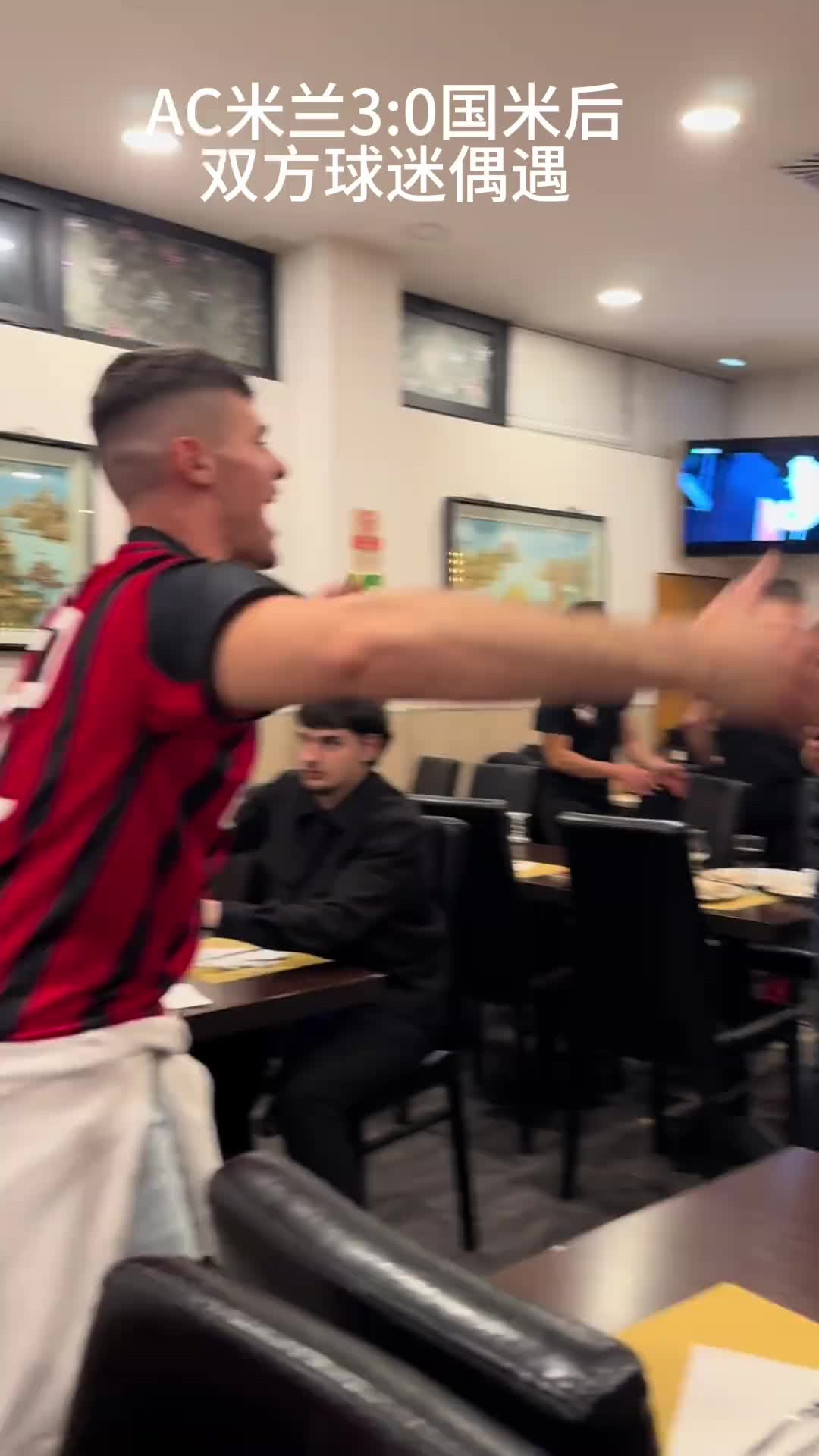 AC米兰在上赛季3:0战胜国米后,双方球迷在餐厅相遇是如此情景