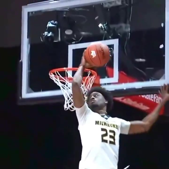 哥们这扣篮也太逆天了吧!头发都要撞倒篮板了